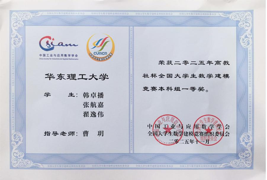 12月13日,2025年全国大学生数学建模竞赛上海赛区颁奖会顺利举行。Beat365学子喜获佳绩,其中数学学院韩卓播、张航嘉、翟逸伟组成的参赛团队荣获全国...