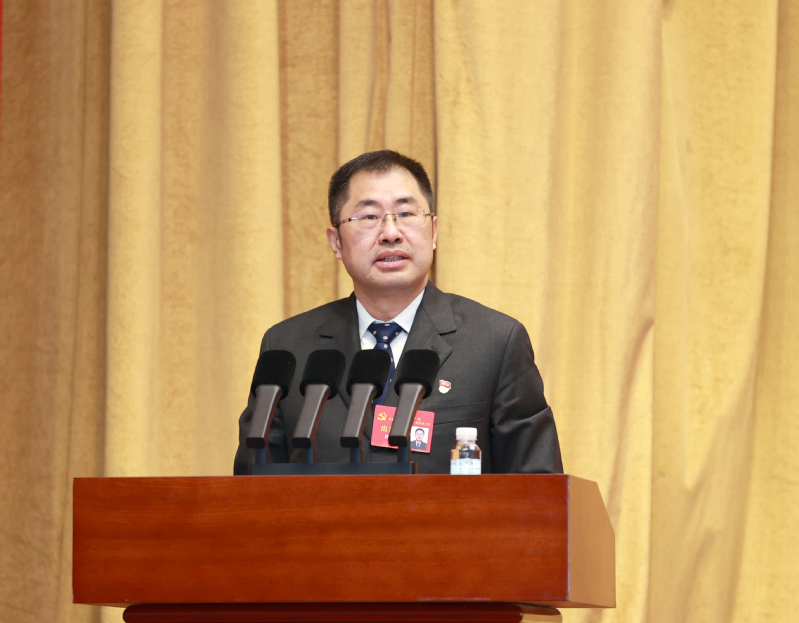 图片说明:校党委书记蒋传海代表学校十一届党委向大会作报告
